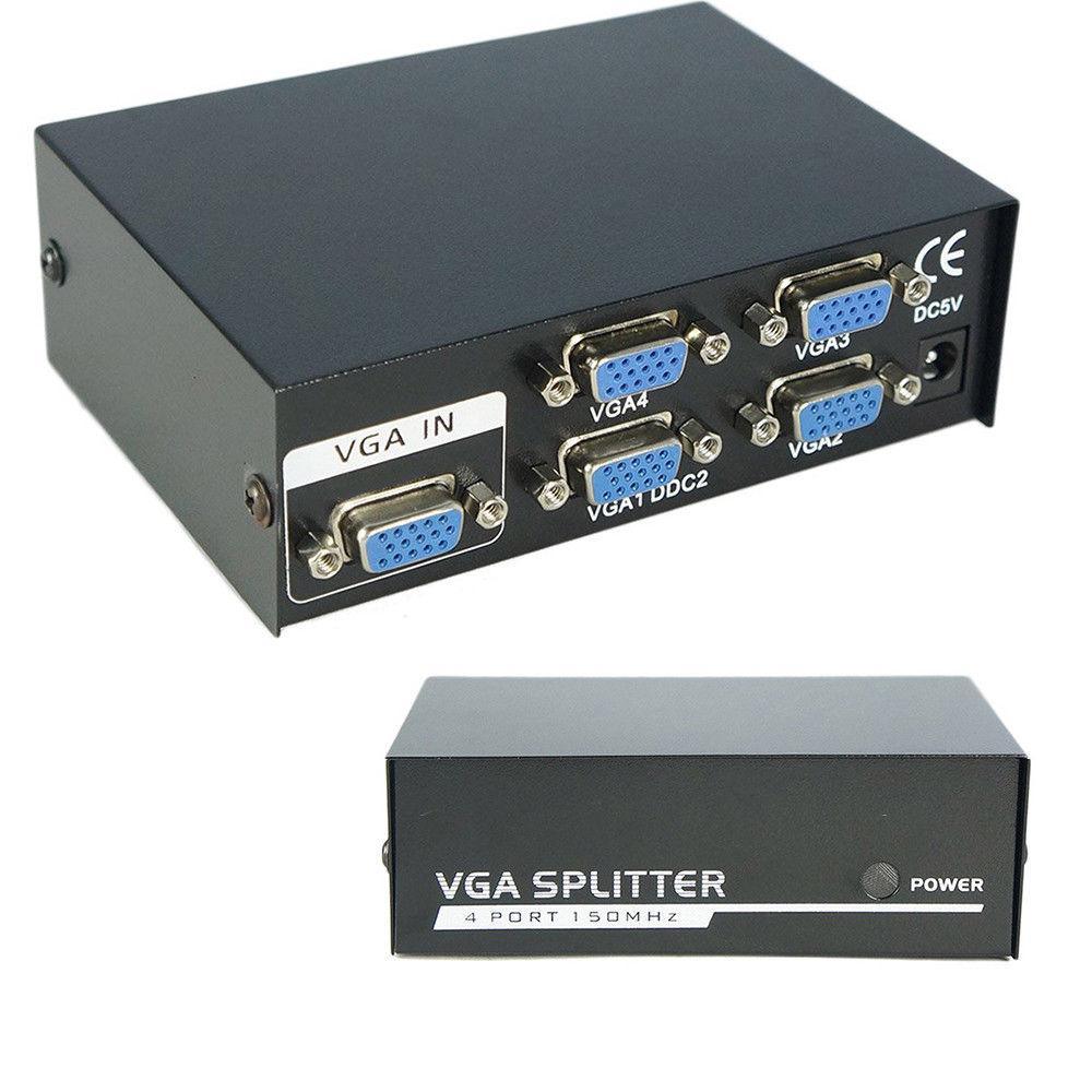 4-Port VGA Splitter – 1 PC to 4 Monitors Display Adapter with High-Resolution Support