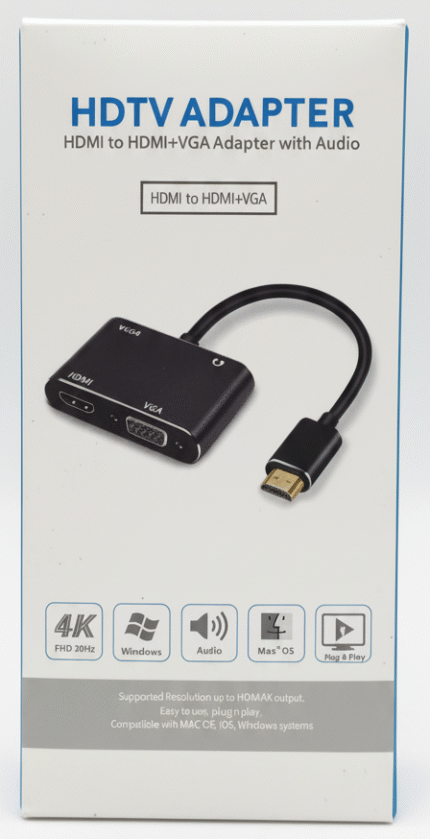 HDTV Adapter – HDMI to HDMI + VGA Converter with Audio (4K FHD)